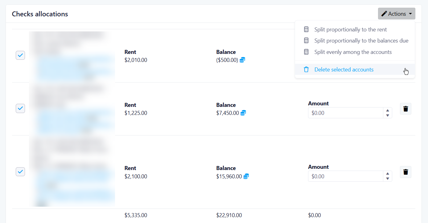 Ability to remove a selection of accounts in the payment allocation.