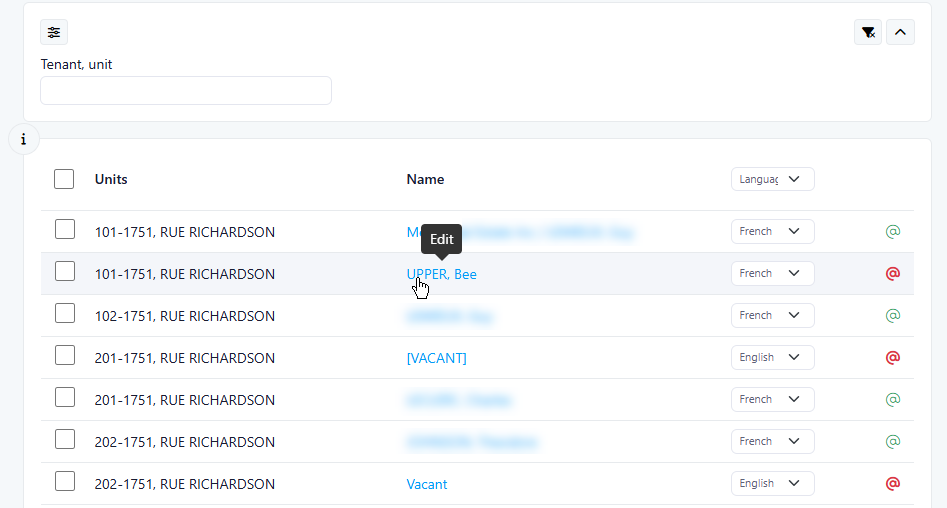 Hyperlinks added to redirect to the resident profiles, to facilitate the update of a resident's coordinates before sending a letter.