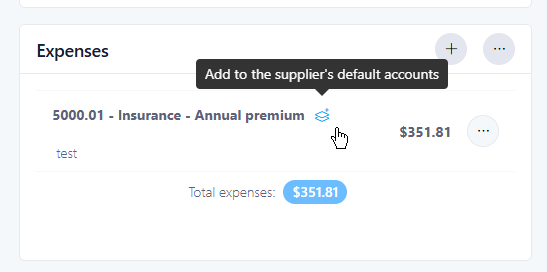 Ability to add an expense account as the vendor's default account when documenting an invoice.