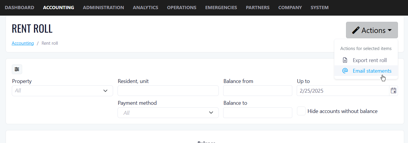 You can now send account statements to all tenants across all properties through the company's rent roll montoring system.