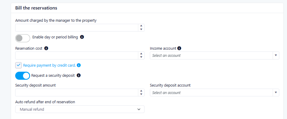 Property managers can now define a security deposit amount directly within the reservation workflow. This deposit can be configured per reservation type or manually adjusted as needed. This feature can be turned on existing reservation listings.