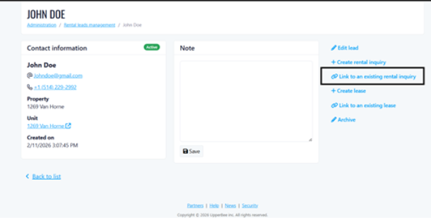 UpperBee now supports linking existing rental inquiries to rental leads, creating a seamless connection between prospect management and the inquiry process.