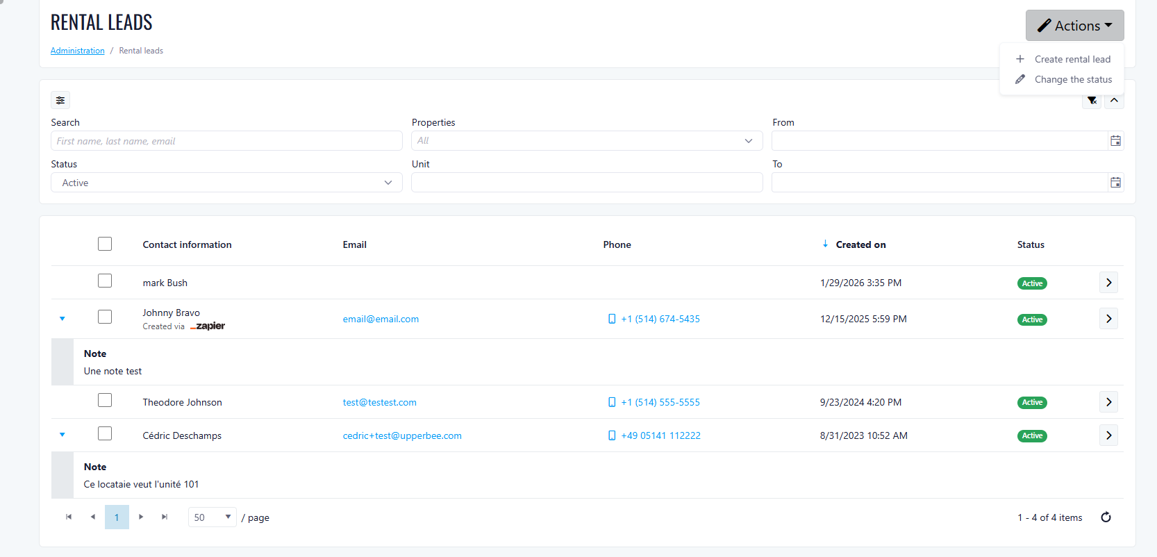 Rental Leads can now be accessed and managed directly from a property, offering a more localized and efficient workflow for leasing teams.