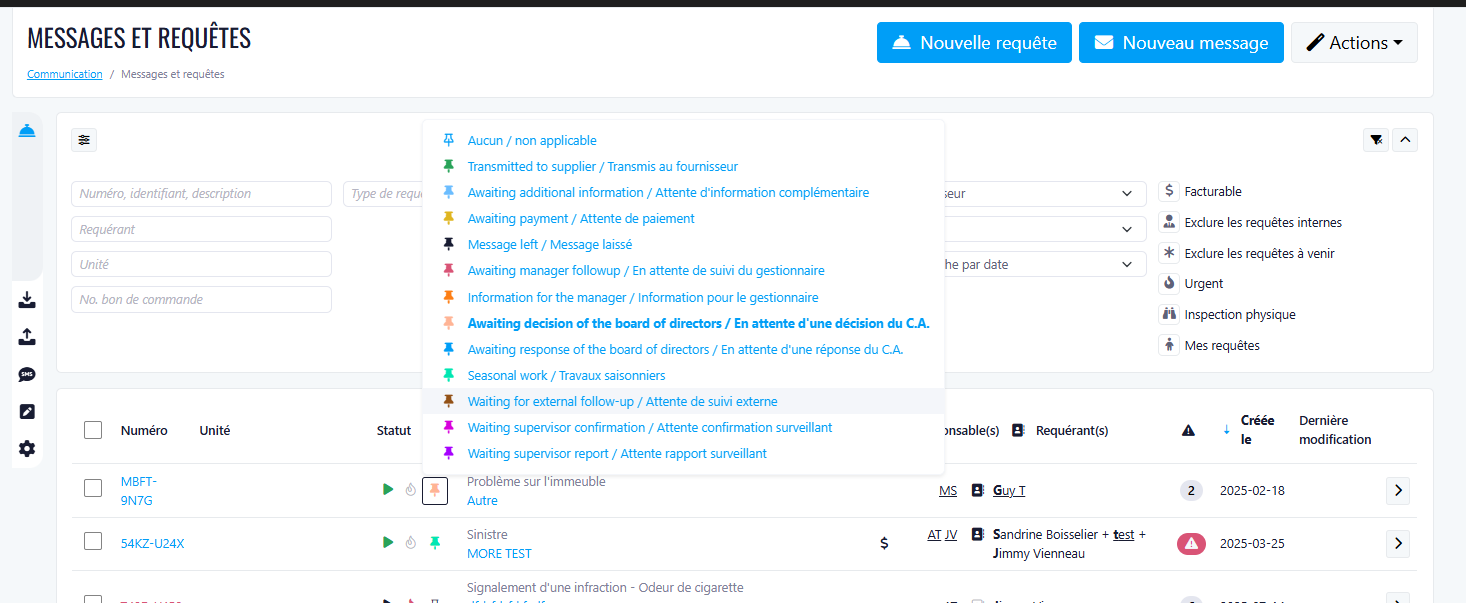 Afficher le statut de la facture dans l'écran "factures impayées du gestionnaire"