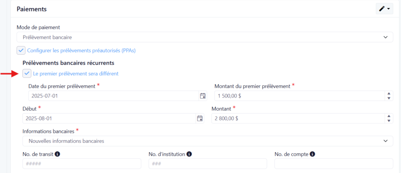 Lorsque le bail d’un résident commence en milieu de mois, le système permet désormais de définir le montant exact à facturer pour le premier paiement.