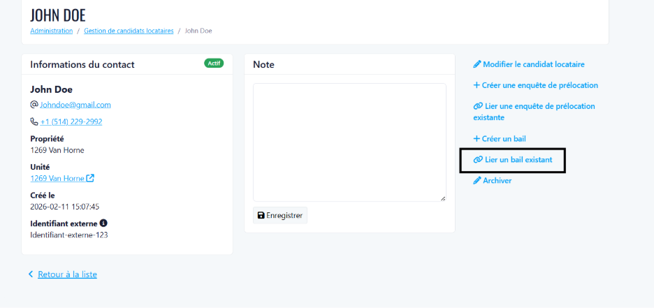 Lier à un bail existant : Connecter un candidat locataire à un bail actuel ou à venir existant