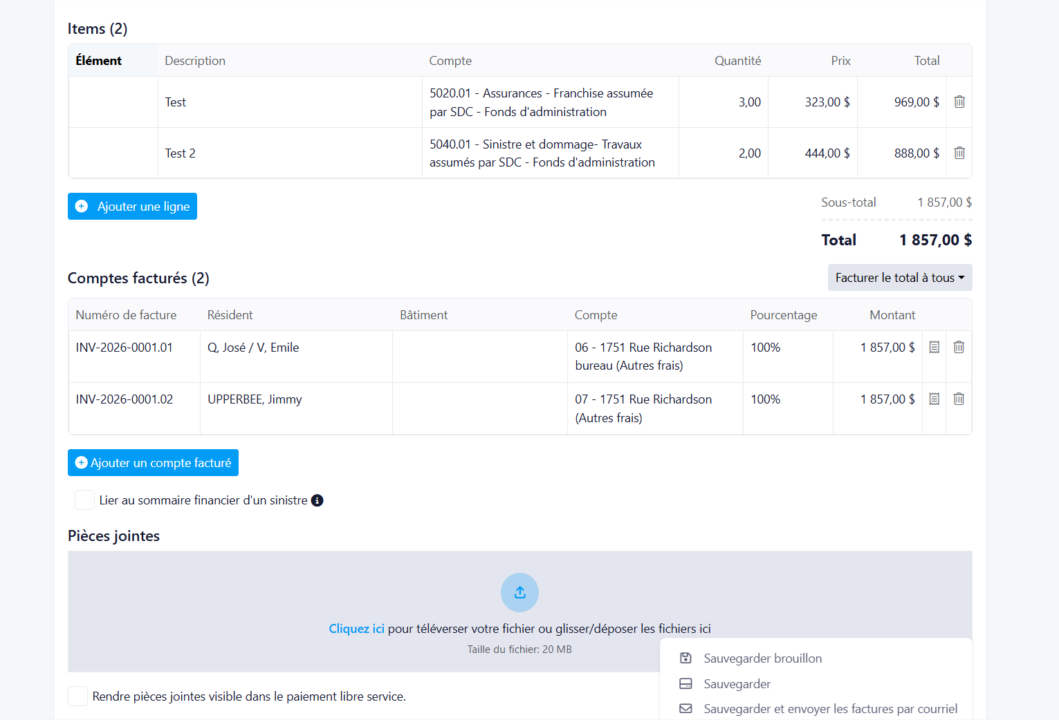 Cette mise à jour introduit une refonte complète de la fonctionnalité Frais spéciaux, permettant aux gestionnaires immobiliers de créer des scénarios de facturation flexibles pour plusieurs résidents avec des capacités améliorées de gestion des factures. Le nouveau système prend en charge des répartitions personnalisées des frais, une meilleure gestion des brouillons et une interface utilisateur modernisée.