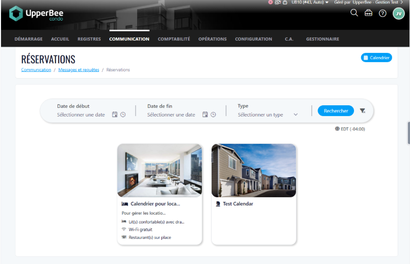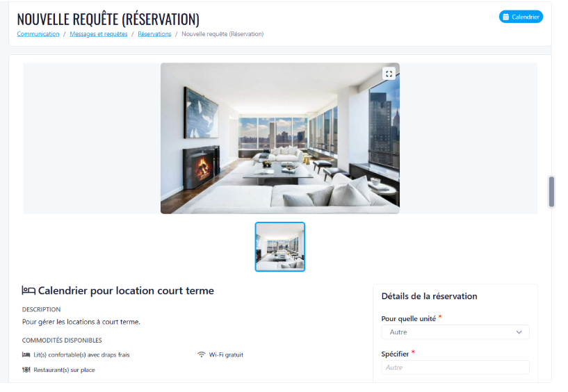 • Réservation via calendrier